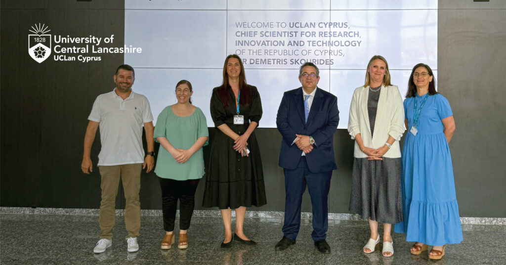 Το Πανεπιστήμιο UCLan Cyprus υποδέχθηκε τον Επικεφαλής Επιστήμονα για Έρευνα, Καινοτομία και Τεχνολογία της Κυπριακής Δημοκρατίας, κύριο Δημήτρη Σκουρίδη, την Παρασκευή, 14 Ιουνίου 2025, στις εγκαταστάσεις του στη Λάρνακα.